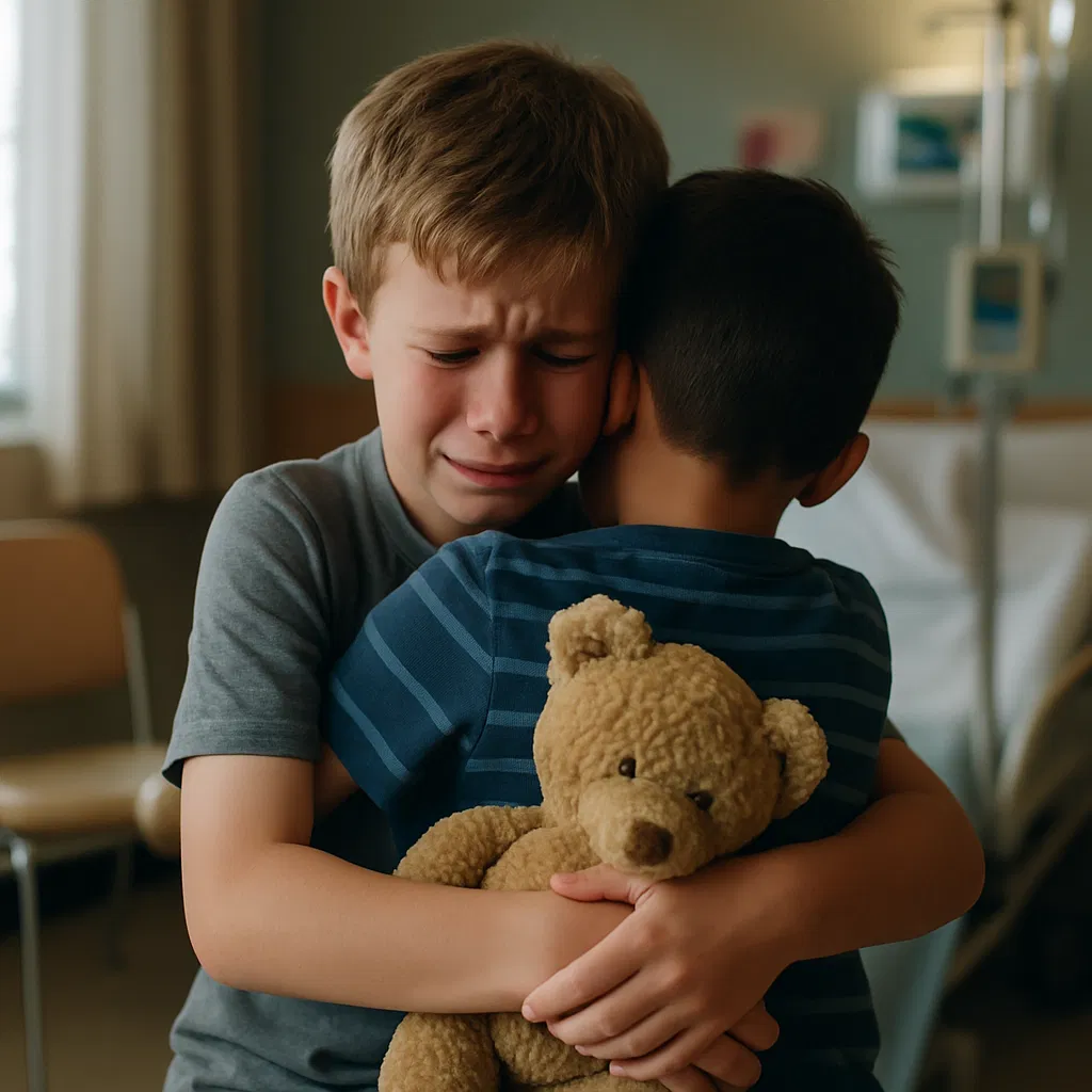 Fue la primera vez que vi a mi hijo llorar de una forma que realmente me conmovió: un dolor que lo consumía por completo, como si intentara abrirse paso. Al día siguiente, en el hospital, Zayden estaba sentado tranquilamente en una silla de plástico, abrazando a su querido osito de peluche y mirando al suelo. En cuanto Micah entró, Zayden corrió hacia él y lo abrazó con tanta fuerza que fue como si el mundo exterior ya no existiera.