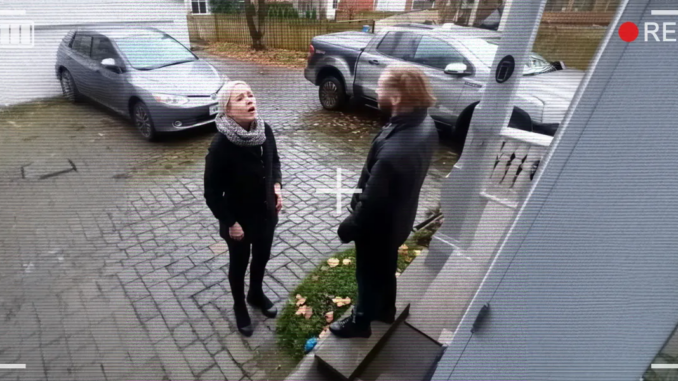 Una mujer parece orgullosa y sin gracia mientras observa a alguien en un vecindario | Fuente: Midjourney