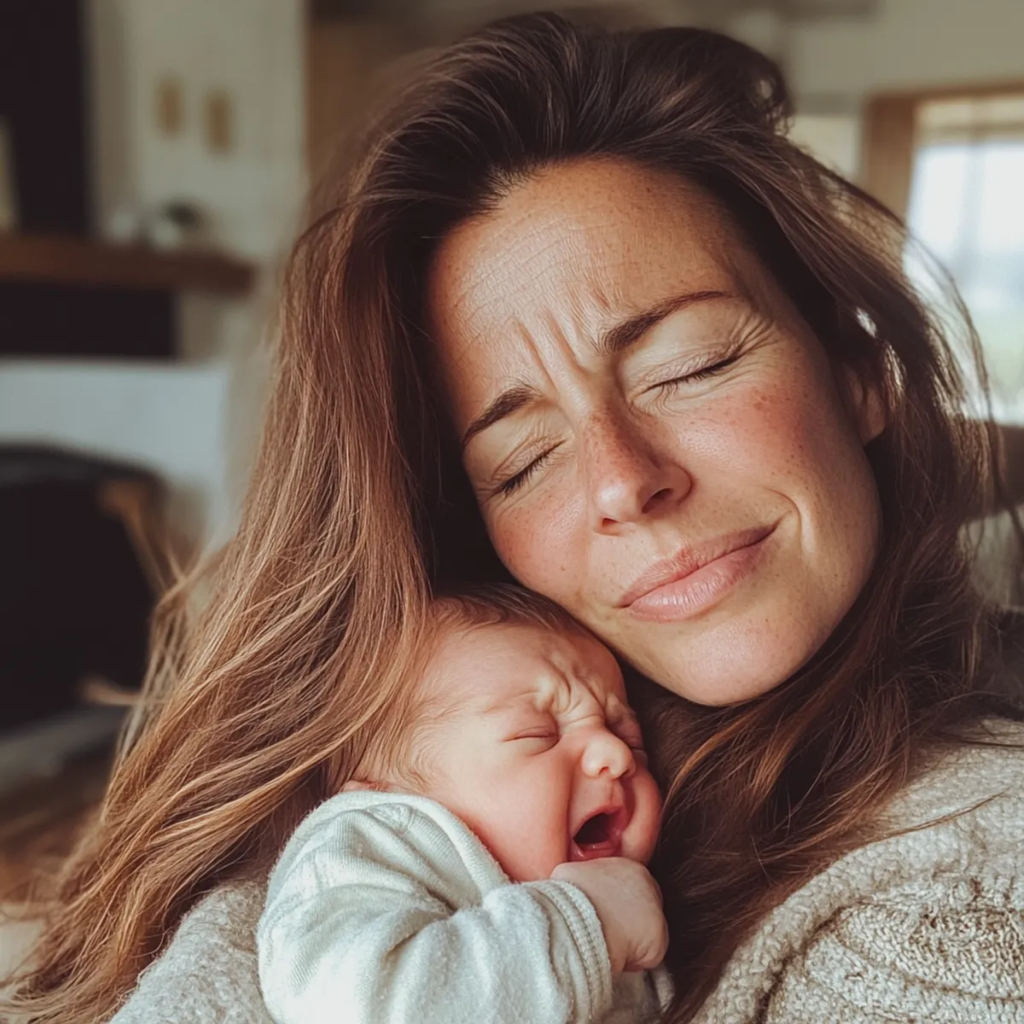 Una mujer con un bebé llorando en brazos | Fuente: Midjourney