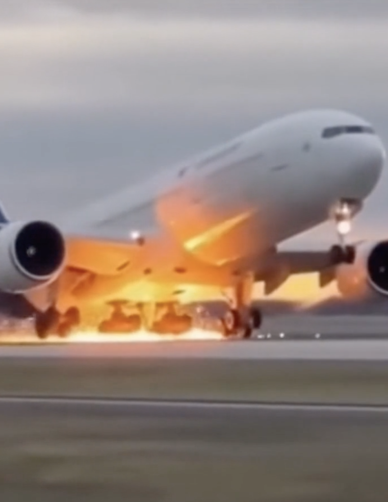 Según los primeros informes, la aeronave había notificado a la torre de control problemas mecánicos poco antes de aterrizar. Al entrar en contacto con la pista, las ruedas delanteras estallaron en llamas , lanzando chispas por la pista mientras la aeronave luchaba por mantener el control.