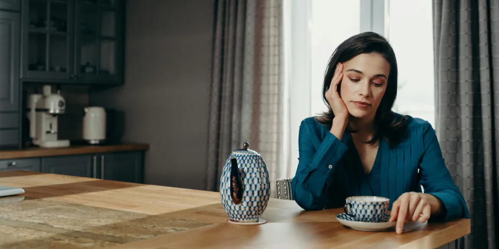 mujer bebiendo té sola