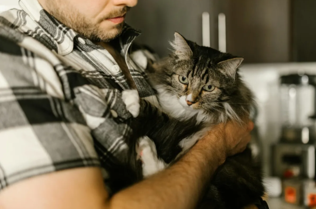 Un hombre sujetando un gato | Fuente: Pexels