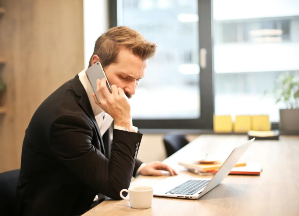 Hombre atendiendo una llamada telefónica en su despacho | Fuente: Pexels