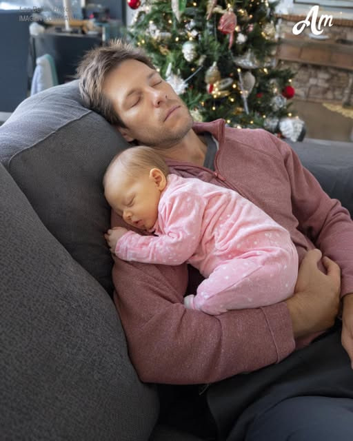 Y al entrar en el salón, me pareció estar viendo cosas: dormido en el sofá, con la cabeza echada hacia atrás y los brazos rodeando a un recién nacido, estaba mi esposo.