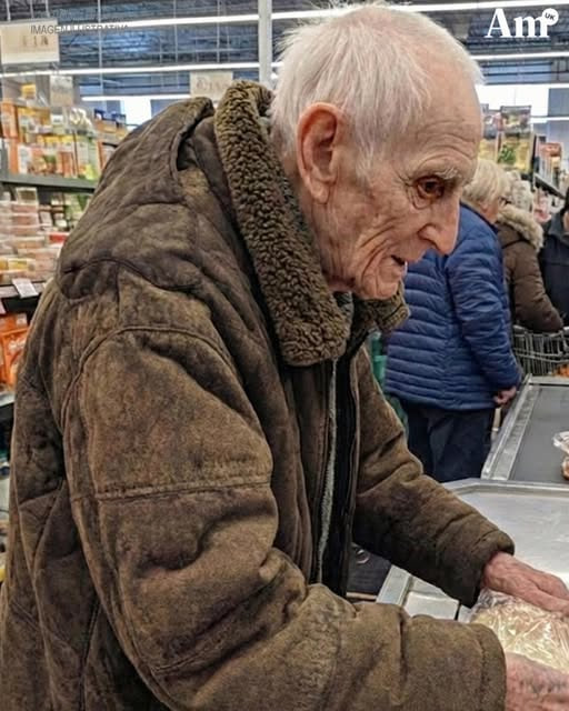Parecía pequeño y estaba ligeramente encorvado, con una chaqueta desteñida que había visto décadas mejores. Le temblaban las manos mientras colocaba en la cinta una barra de pan, un tarro de mantequilla de cacahuete y un pequeño cartón de leche, artículos tan básicos que casi dolía mirarlos.