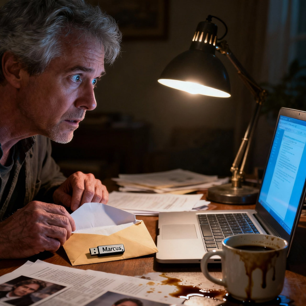 Dentro había una memoria USB con mi nombre escrito con la inconfundible letra de Marcus.—Lo grabó tres semanas antes de morir —dijo David en voz baja—. Insistió en que lo vieras a solas.Esa tarde, con Vanessa fuera y la casa en silencio, me encerré en mi estudio y conecté la memoria USB a mi portátil. El rostro de Marcus apareció en la pantalla, delgado y pálido, con un tubo de oxígeno bajo la nariz. Pero su mirada era penetrante.”Tom”, dijo, usando el apodo que solo él usaba. “Si estás viendo esto, me voy. Y necesitas escuchar con atención”.Hizo una pausa, tosiendo. Luego miró directamente a la cámara.“Tu esposa Vanessa y su hijo Kyle están planeando matarte”.Me quedé paralizada. Mi primer instinto fue la negación. Analgésicos. Alucinaciones. Cualquier cosa menos esto. Pero Marcus lo previó.”Conseguí que un investigador privado investigara”, continuó. “Todo está en este disco. Audio. Documentos. Pruebas”.Sentí una opresión en el pecho cuando añadió: «Ya lo han hecho antes. No eres el primero. Pero si estás viendo esto… puede que aún tengas tiempo».