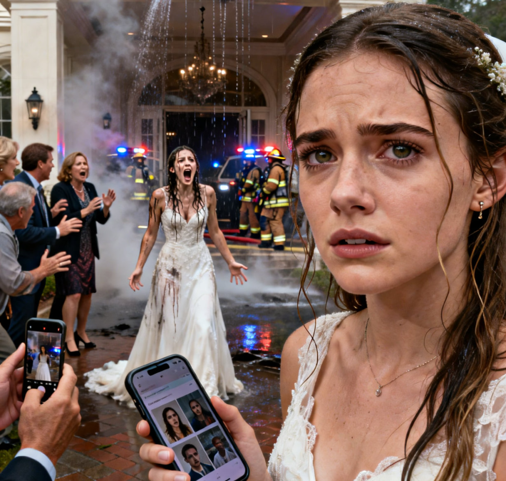Three blocks away, traffic stopped. Smoke rose above the rooftops in a gray ribbon, and red lights strobed against the early-evening sky. When I finally parked and ran toward the crowd, I saw guests clustered on the sidewalk in formalwear, some barefoot, some crying, all filming with their phones. The hotel’s ballroom doors were propped open, sprinklers dripping. A section of decorative draping had burned black, and the air smelled like wet fabric and melted wax.