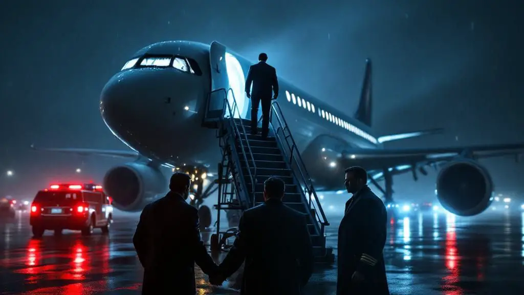 “No es por el aterrizaje, capitán,” interrumpió el otro agente, su voz carente de toda emoción. “Queda usted detenido en aplicación del artículo 384 de la Ley de Enjuiciamiento Criminal, como presunto responsable de un delito de malversación de caudales públicos y fraude.”