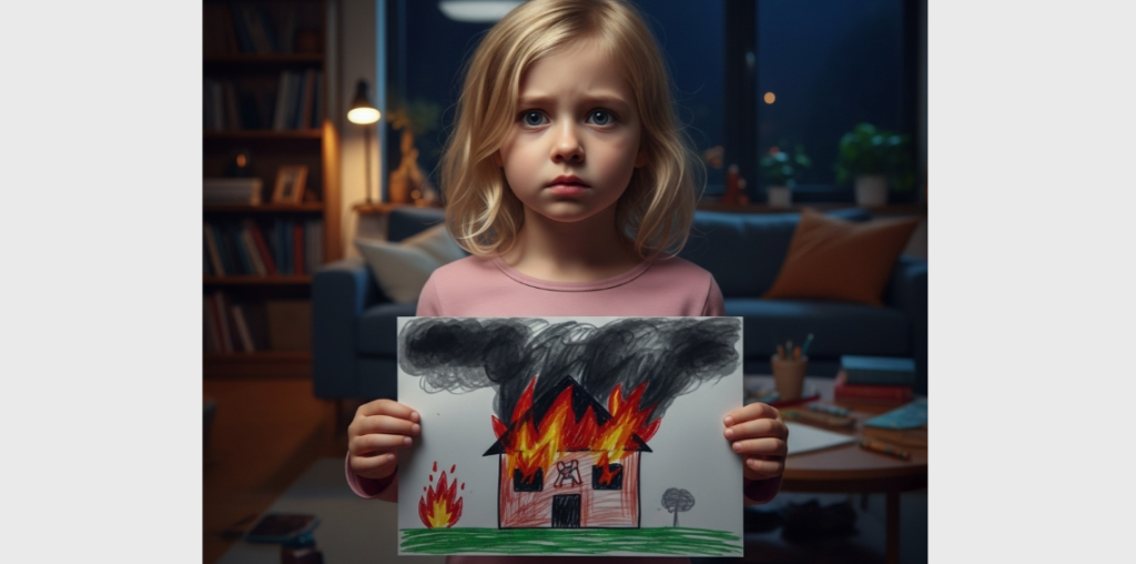 Intenté parecer informal. “Cariño… ¿por qué tus dibujos son tan macabros últimamente? ¿Qué le pasó a mi pequeña y feliz artista?”