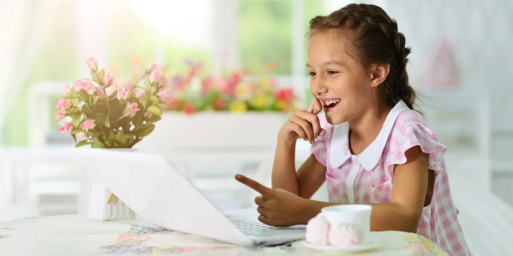 Lily entró en la habitación dando saltitos, con las coletas al aire. Miró la pantalla y su cara se iluminó como un árbol de Navidad.