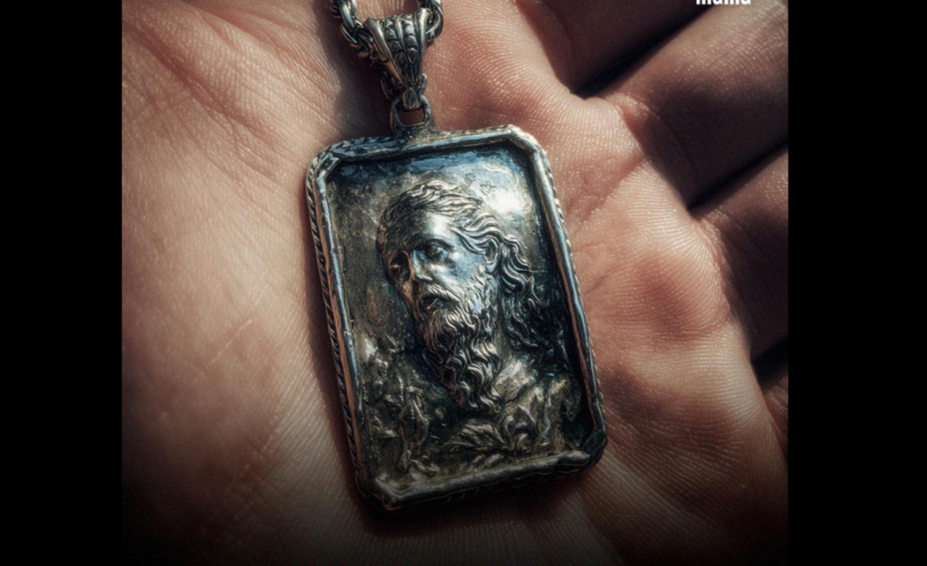 Un pequeño dije ovalado en una fina cadena, de plata, desgastada por los años, sobre su piel. Lo usaba en bodas, funerales, en el supermercado y para dormir.