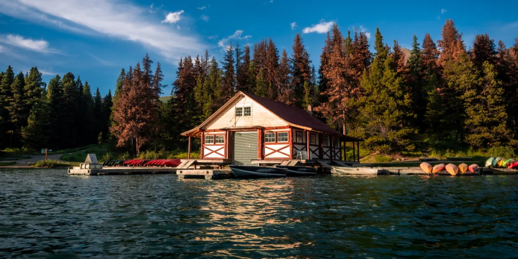 Una toma panorámica de una impresionante casa junto al lago | Fuente: Midjourney