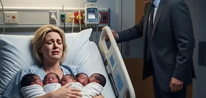 Pero él ya no la escuchaba. “¡No! ¡Me traicionaste!”, gritó, retirándose hacia la puerta, dejándola con cinco recién nacidos llenos de vida, pero sin padre. La riqueza y el estatus significaban más para él que la verdad y la familia.