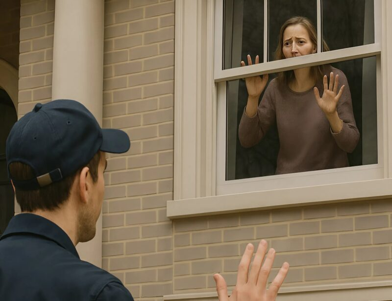 La ventana por donde había aparecido se había convertido en su única oportunidad. El marido había olvidado cerrar la oficina con llave, y ella se arriesgó. Durante meses intentó hacer señales a los transeúntes, pero todos pasaban de largo. Excepto una persona.